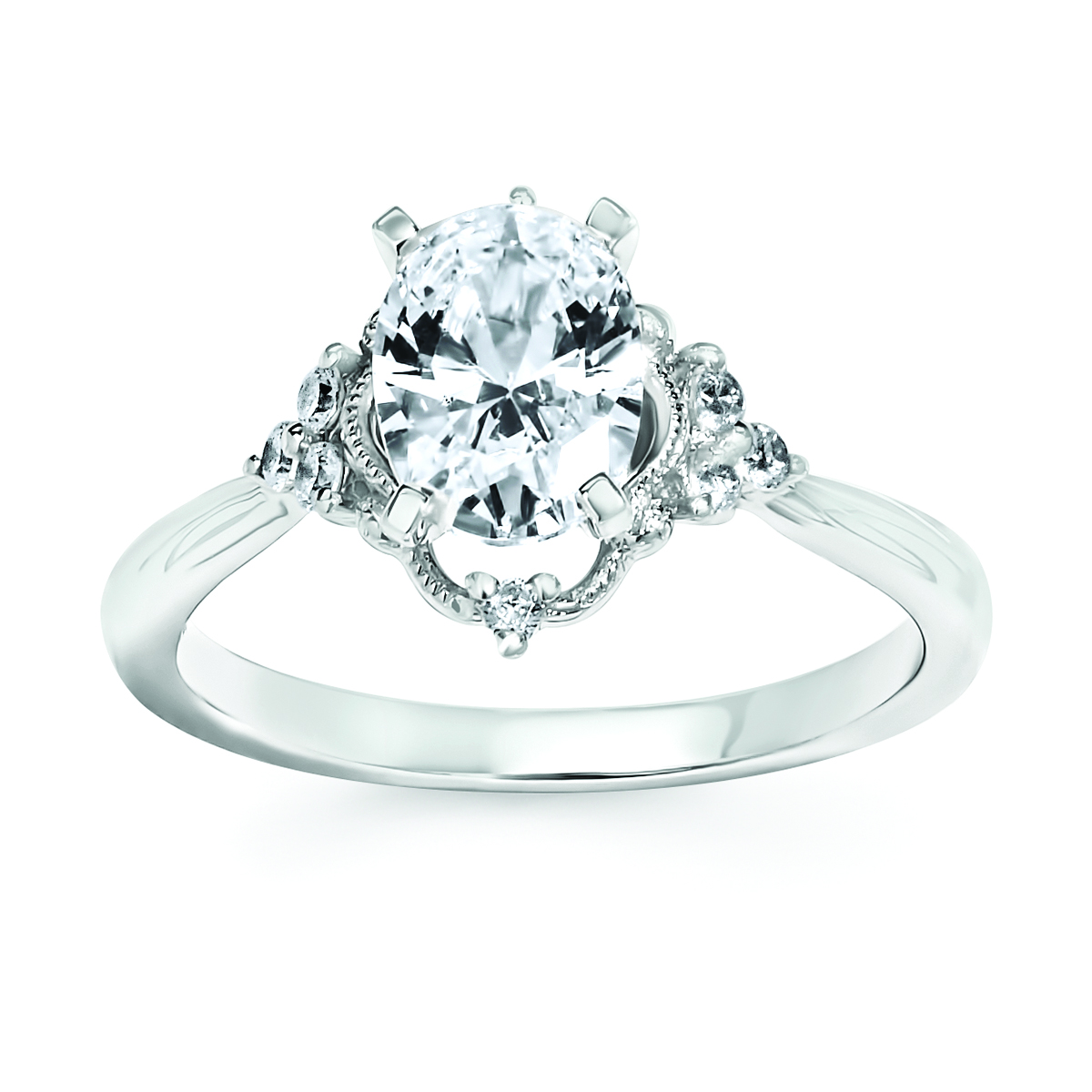 Engagement Ring Forever ElegantĀ® 1/8 Ctw. Diamond Semi Mount shown with 1 Ct. Oval Center Diamond in 14K Gold