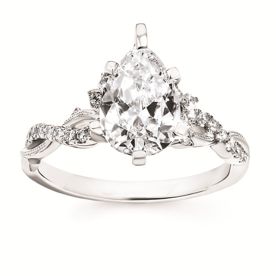 Engagement Ring Forever ElegantĀ® 1/5 Ctw. Diamond Semi Mount shown with 2 Ct. Pear Center Diamond in 14K Gold
