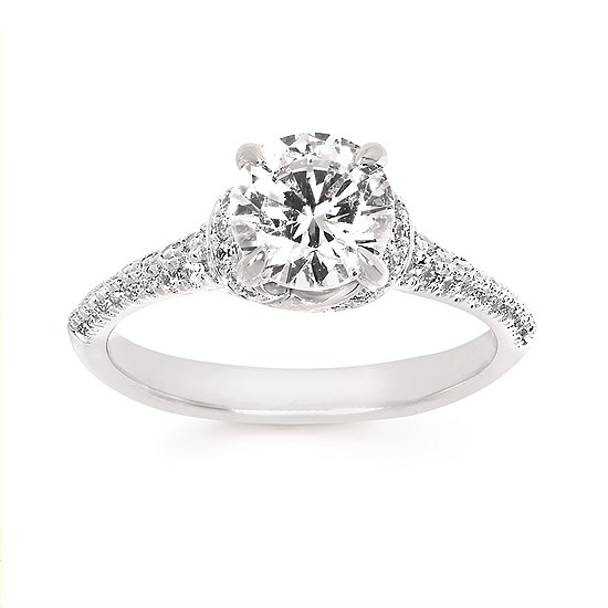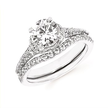 Engagement Ring Modern Bridal: 1/3 Ctw. Diamond Semi Mount shown with 1 1/2 Ct. Oval Center Diamond in 14K Gold