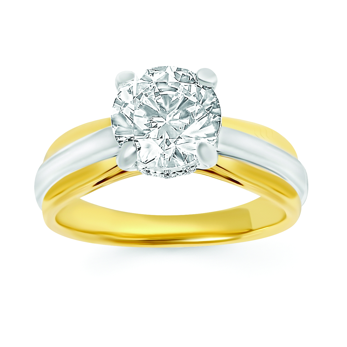 Engagement Ring Classic Bridal: 0.07 Ctw. Diamond Semi Mount shown with 2 Ct. Round Center Diamond in 14K Gold